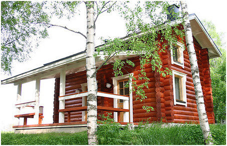 Koskelo on 64 neliön käsin veistetty pyöröhirsimökki. Majoitus 8 (vuodepaikkaa) henkilölle.
